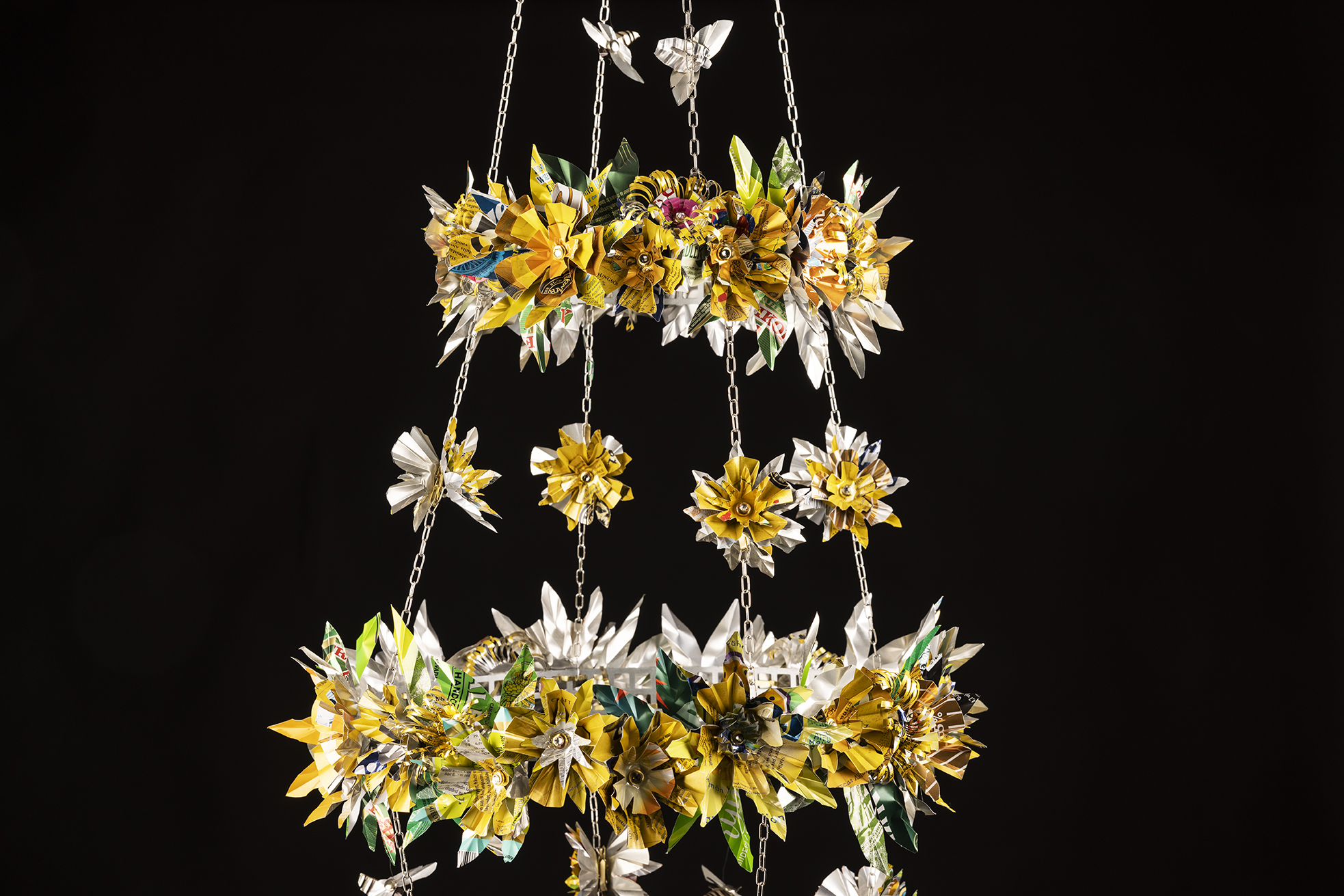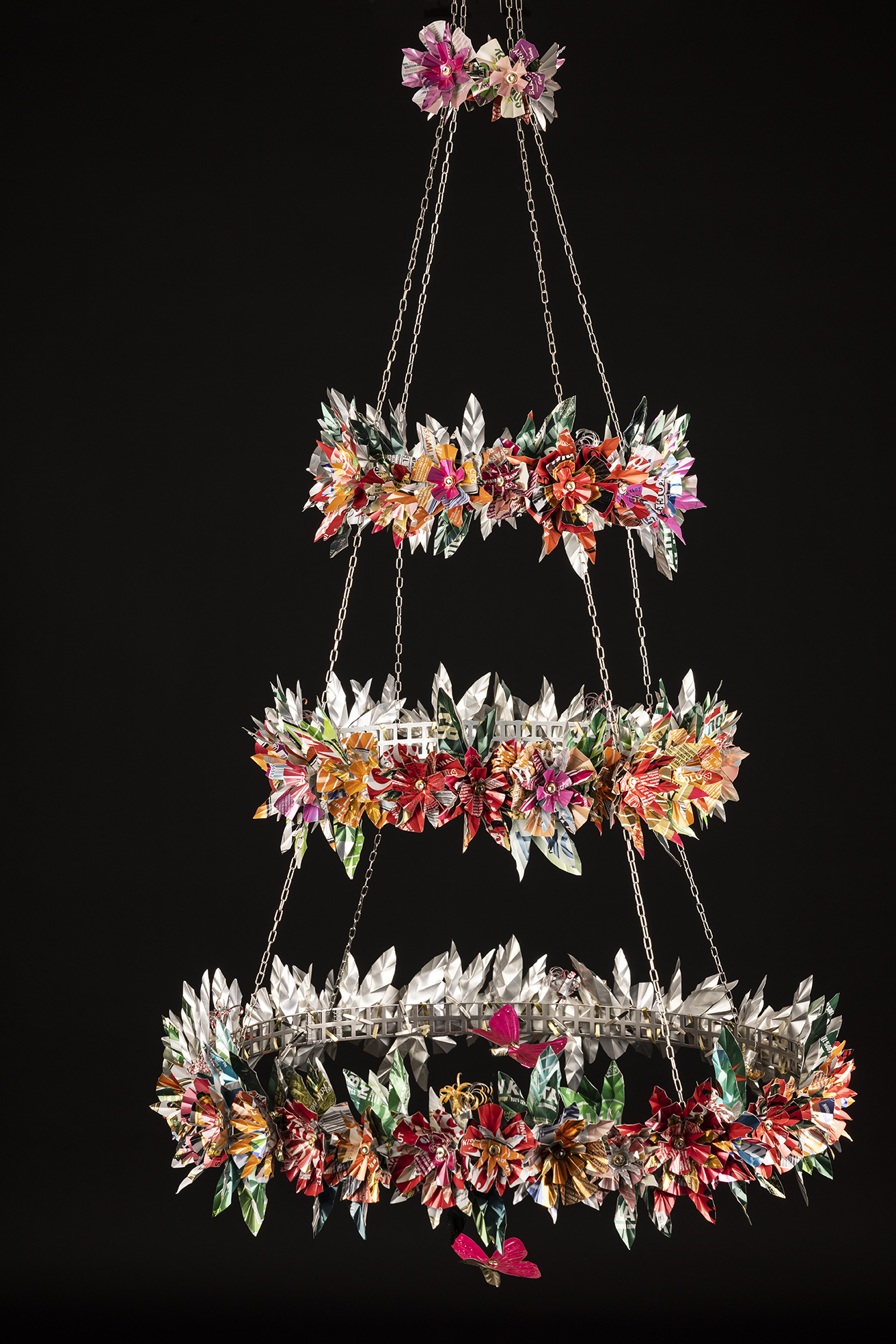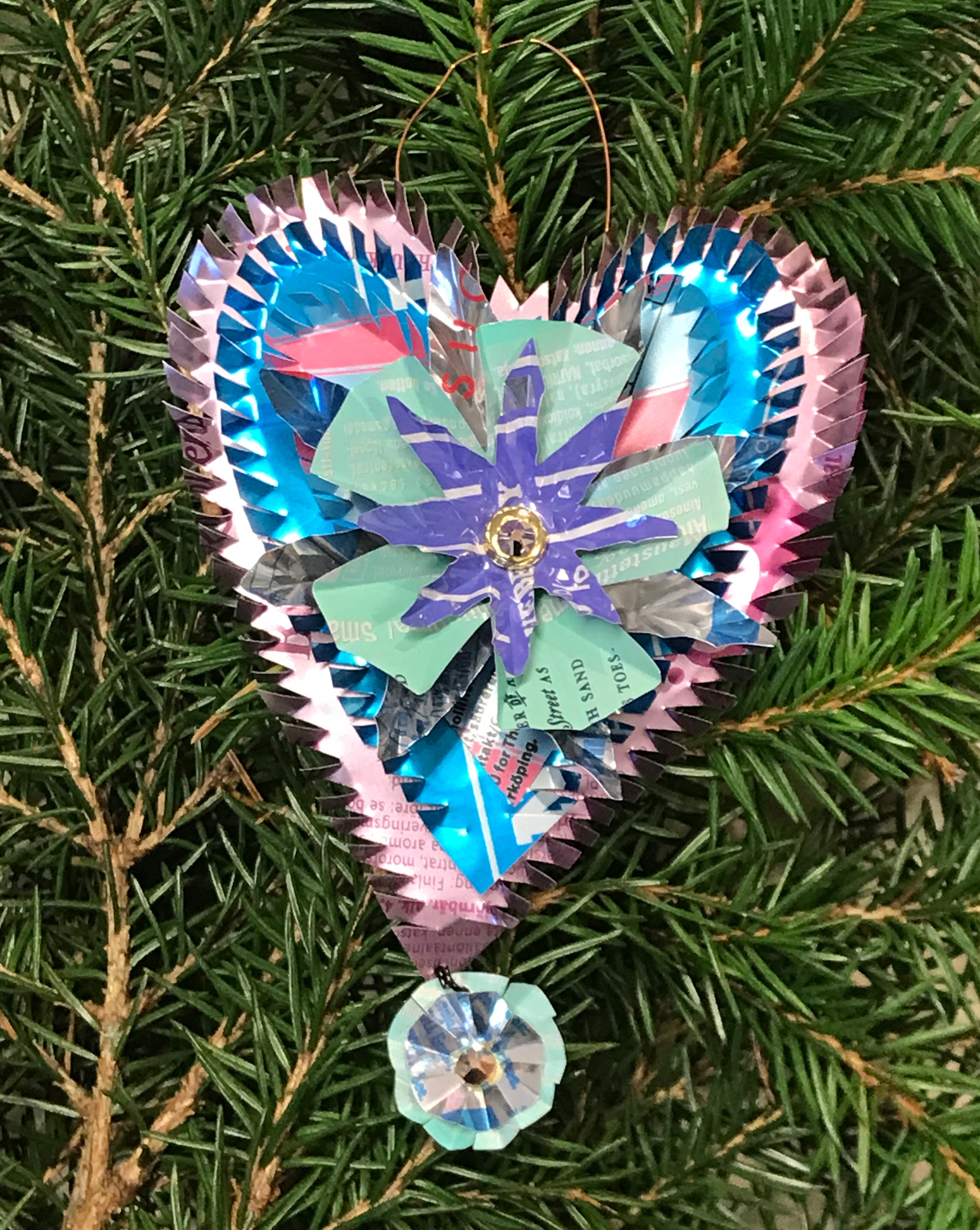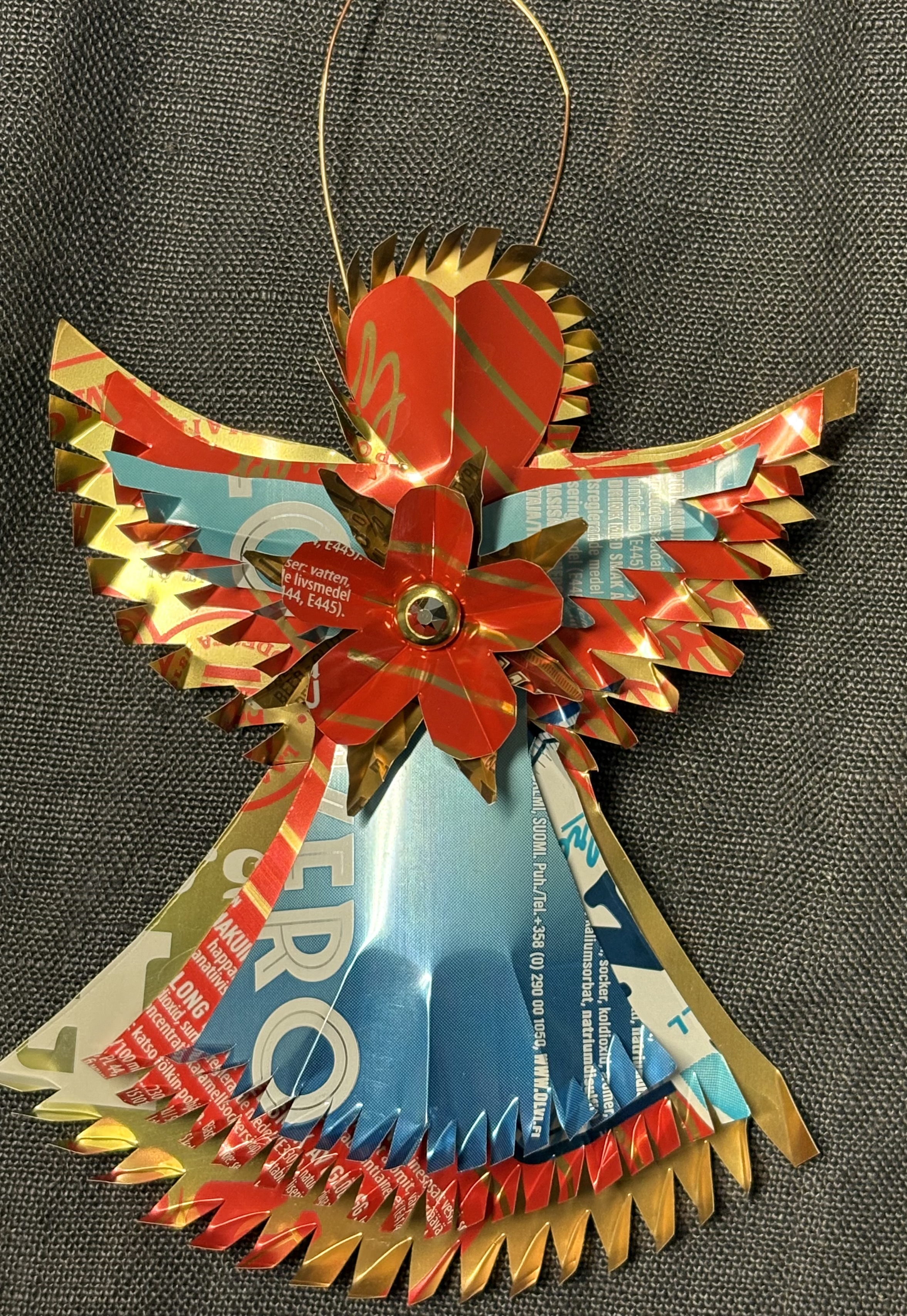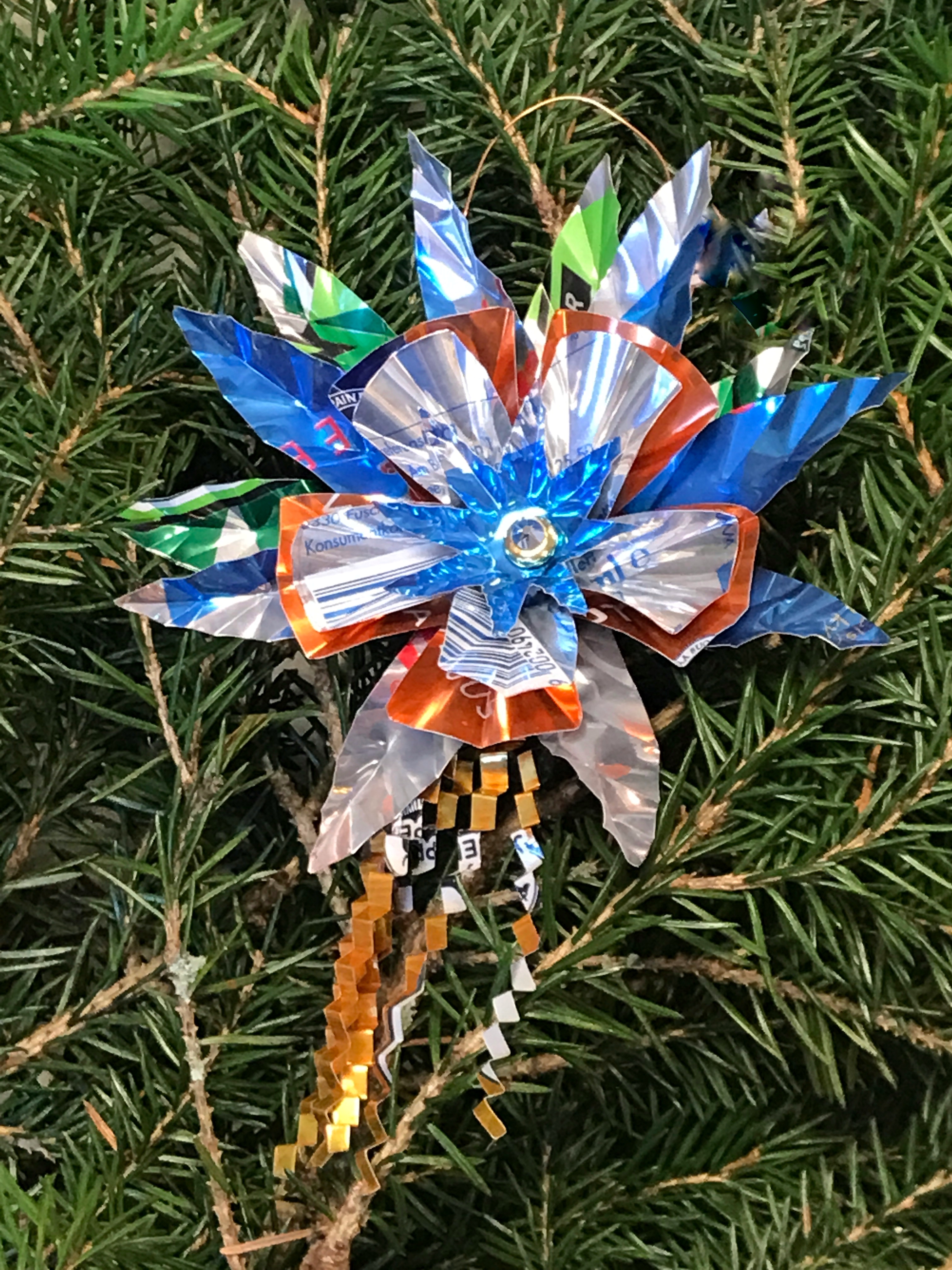 Titti gör även takkronor och julpynt av återbrukade läskburkar som kan ses i bildspelet.